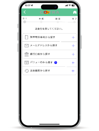 相手の口座番号がわからないときでも、携帯電話番号やメールアドレスあてに送金や受取が可能です。